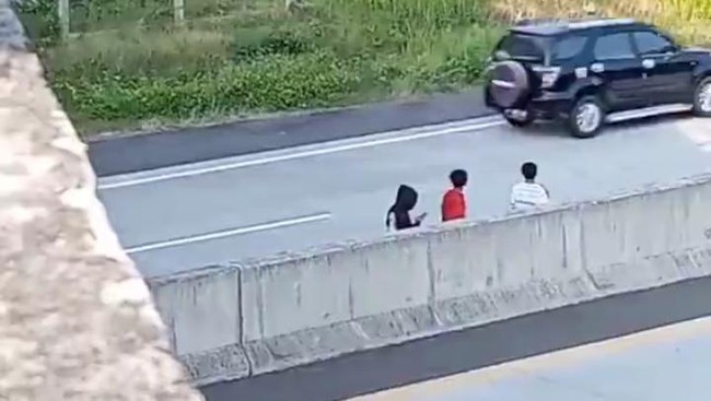 Sekelompok anak bermain di tengah Tol Boyolali ruas Semarang-Solo Km 480. Video anak-anak yang dinarasikan merekam truk oleng di jalan itu pun viral di media sosial.