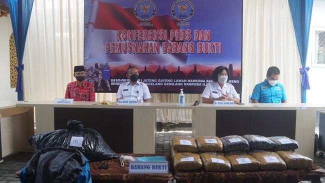 "Terungkapnya diawali informasi dari masyarakat kemudian Tim BNNP dan BNN Magelang bersama-sama dengan Kantor Pengawasan dan Pelayanan Bea dan Cukai (KPPBC) Semarang menghentikan salah satu kendaraan umum dan didapatkan di situ ganja seberat kurang lebih 19,3 kg yang dibawa oleh ATC alias Cepot," kata Purwo kepada wartawan di BNNK Magelang, Kamis (21/10/2021).
