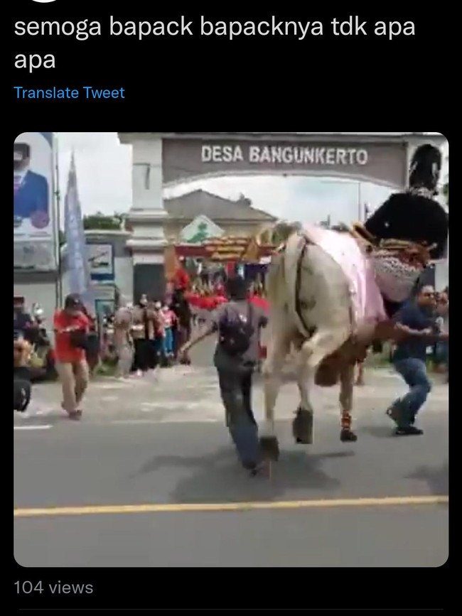 Dari video yang beredar, saat itu Raudi menunggang sapi menuju lokasi acara di Desa Wonokerto. Namun meski ada insiden itu, acara gelar budaya itu diketahui tetap berlanjut.