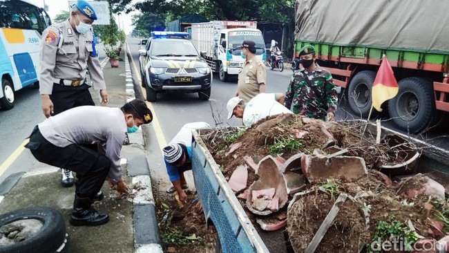 Pantauan detikcom di lokasi, pot yang rusak ditemukan mulai ruas simpang empat Karangwuni sampai Ngaran, Desa Mlese. Pot semen pecah bertumbangan ke badan jalan.