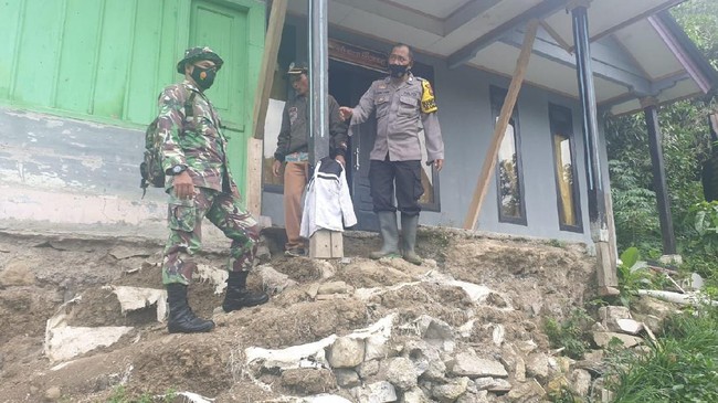 "Retak bagian teras rumah serta pondasi teras rumah ambrol, sementara penghuni rumah mengungsi di rumah tetangga, dan mengosongkan rumahnya," jelas Jariyah.