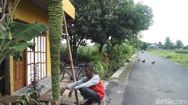 Pohon pisang unik yang ditanam Sukadi (54) di Boyolali, Jateng, ini cukup unik. Buah pisangnya mencapai ratusan biji dan panjang tandannya mencapai lebih dari dua meter hingga menyentuh tanah.