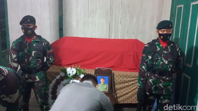 Jenazah Sertu Ari tiba di rumah duka Senin (22/11/2021) dini hari. Sontak tangis keluarga pecah ketika ambulans pembawa jenazah tiba. Sejumlah anggota Kodim 0715 Kendal dan Yonif 400 R lalu mengangkat peti jenazah Sertu Ari untuk dibawa masuk ke dalam rumah.
