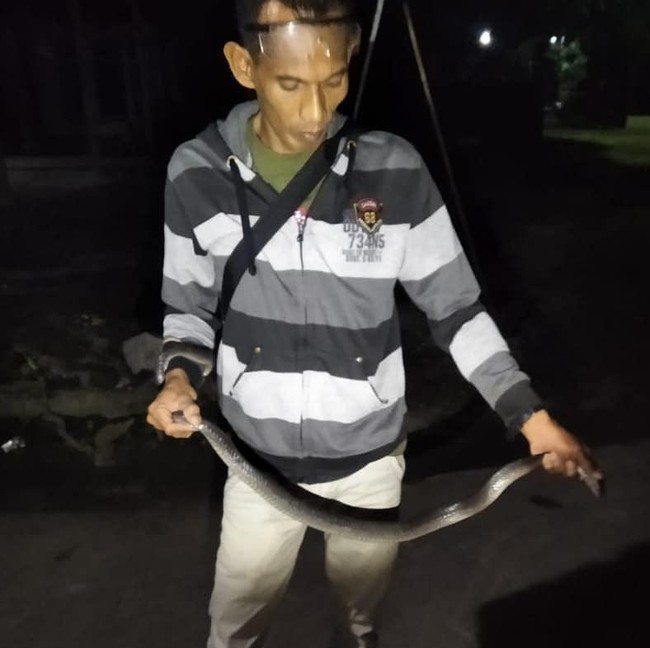 Munir menuturkan, ular kobra itu posisinya berada di samping rumah warga. Ukurannya sudah cukup besar karena lebih dari satu meter.