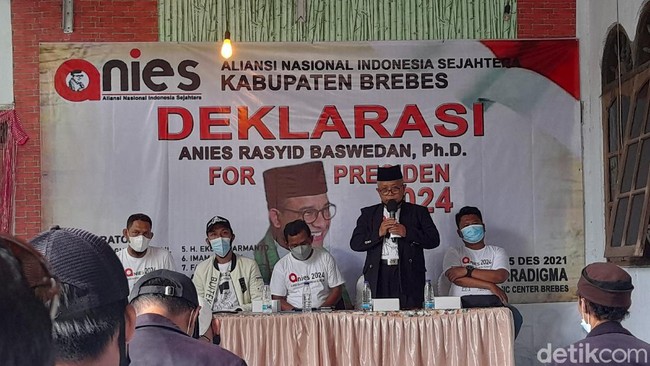 Kelompok relawan di Kabupaten Brebes, Jawa Tengah, mendeklarasikan dukungan untuk Anies Baswedan sebagai calon presiden (capres) pada Pilpres 2024. Deklarasi ini dihadiri beberapa tokoh masyarakat dan tokoh agama.