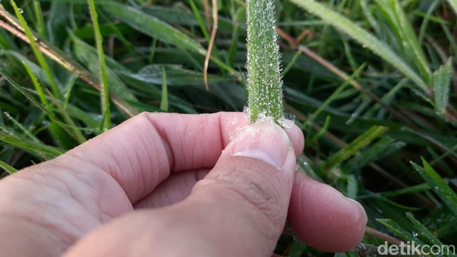"Embun akan membeku saat tutupan awan oktasnya rendah dan perbedaan kelembaban udara maksimum dan minimum cukup lebar. Selain itu juga didominasi angin kecepatan lemah cenderung calm," jelasnya.