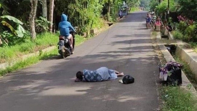 Belakangan diketahui, perempuan itu adalah Jaenab (49) warga Desa Lebeng, Kecamatan Sumpiuh, Kabupaten Banyumas. Jaenab diduga sengaja tiduran di tengah jalan agar warga menaruh belas kasihan sehingga mau melarisi dagangannya yang berupa makanan ringan.
