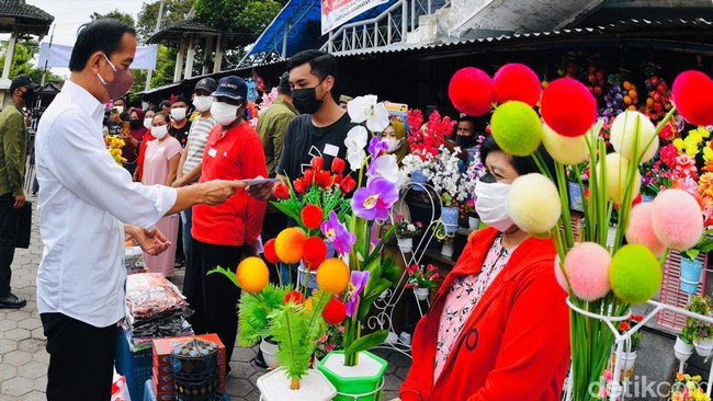 Para pedagang menerima bantuan itu dengan mengucapkan terima kasih. Dalam kesempatan itu, Jokowi mengingatkan para pedagang untuk tetap disiplin menjalankan protokol kesehatan, termasuk mengenakan masker.