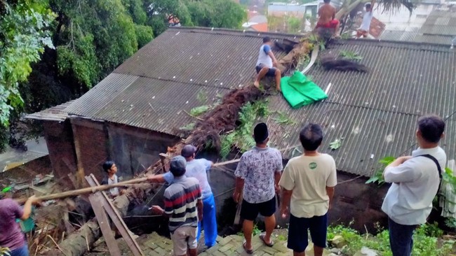 "Tadi hujan dengan angin kencang ada beberapa lokasi pohon tumbang. Tiang lampu roboh, asbes berjatuhan," kata Winarsono lewat pesan singkat kepada wartawan, Rabu (19/1/2022).