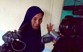 Ibunda Amrozi yang biasanya memilih di dalam rumah karena selalu menjadi bidikan media akhirnya bersedia keluar dan menemui para pendukung anaknya.
