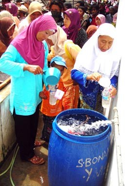 "Ini saya mengambil lagi untuk anak dan suami saya," kata Siti Alfiyah yang ditemui detiksurabaya.com di pinggir sumur tersebut.