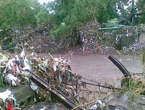 Saat itu air sungai meluap hingga ketinggian 2 meter. Akibatnya 2 rumah milik warga yang berada di pinggir jalan ambruk. Meski begitu tidak ada korban jiwa.