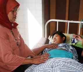 Saat ditemui di ruang Melati 6 RSU dr Haryoto Lumajang, ibu tiga anak hasil pernikahan suaminya, Totok Tri wahyudi (37), kenek truk kargo antar propinsi ini masih tergolek lemah.