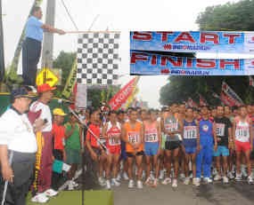 Lomba lari yang menempuh jarak 10 Km yang di berangkatkan Lanud Iswahyudi Madiun Marsekal Pertama Ismono Wijayanto.