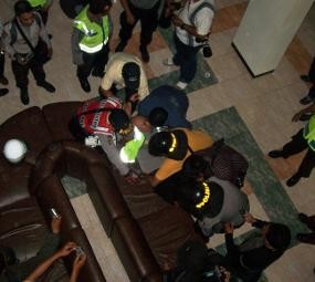 Mendapati kapolres menjadi korban pelemparan, sejumlah personel yang melakukan pengamanan langsung berlarian memberikan bantuan. Kapolres langsung dibopong ke ruangan Bupati Lumajang H Sjahrazad Masdar untuk mendapatkan perawatan dari petugas medis RS Bhayangkara yang sejak awal telah disiapkan di lokasi.