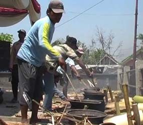 "Untuk memasaknya pun, kami menggunakan tungku tradisional yang menggunakan kayu bakar dan memasaknya diatas kuali besar," jelasnya.