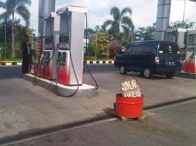 "Iya habis mas," kata Sugiarto salah satu pegawai SPBU ditemui di ruang kerjanya, Rabu (17/4/2013).