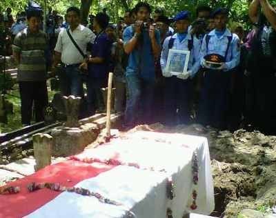 Dengan diiringi isak tangis keluarga almarhum, sekitar pukul 11.00 WIB, jenazah Andik dibawa ke tempat pemakaman umum Desa Kepuh. Dibalut bendera pusaka merah putih, peti jenazah digotong anggota TNI AU menuju ke tempat pemakaman tersebut. Upacara pemakaman dilangsungkan dengan upacara militer berlangsung sekitar satu jam.
