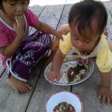 Di sebuah gasibu di samping warung orang tuanya, Hanifatul Humairoh dan adiknya Hanifatuz Zahro mulai menyantap sepiring nasi dengan lauk ikan laut. Untuk melengkapi lauknya, segenggam konsentrat diwadahi lepek ada di dekat keduanya. Sesekali kedua balita itu mengambil konsentrat dan memakannya dengan nasi.