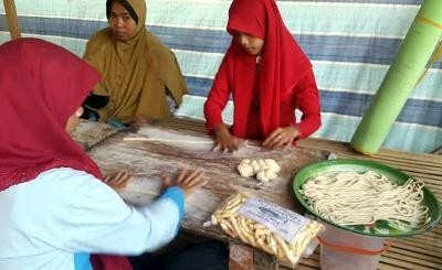 Sentra yang dikelola Hamsyah alias Mak Siye itu terlihat 10 perempuan serius membuat kerupuk berbahan baku Ikan Tongkol dan Tengiri itu.