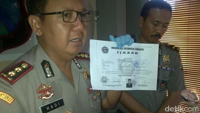 "Ijazah sarjana S-1 ini diduga kuat palsu, karena yang bersangkutan hanya lulusan SMA. Dugaan ijazah palsu ini akan didalami oleh penyidik," kata Kapolres Situbondo, AKBP Hadi Utomo, Rabu (3/6/2015).