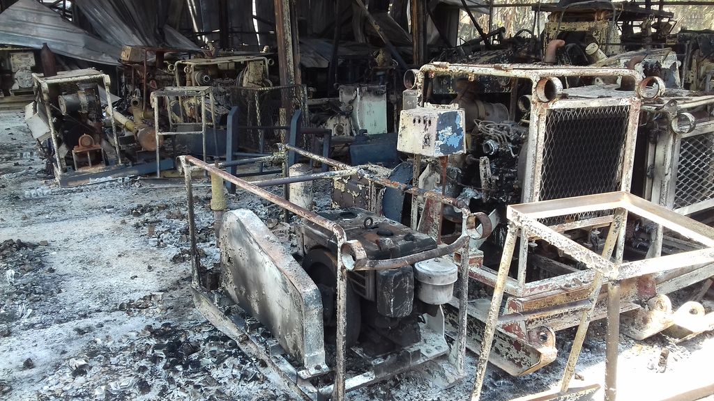 Dalam aksinya, massa juga membakar gudang. Alat bor, genset, dan bahan kimia, ludes. Beruntung, tangki penyimpanan avtur di dekat helipad, tak dibakar massa.
