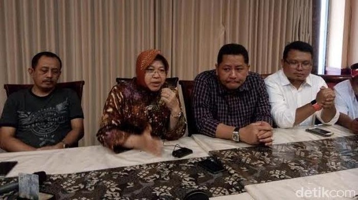 "Loh kamu kok tahu," kata Tri Rismaharini saat jumpa pers bersama Wishnu dan tim pemenangan PDIP Surabaya di sebuah rumah makan di Jalan Kertajaya, Surabaya, Minggu (14/2/2016).