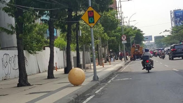 "Kalau dikasih pagar kan jelek. Apalagi di kasih barier besi, terlihat tidak cantik. Makanya kita kasih bola-bola pengaman itu," ujarnya.