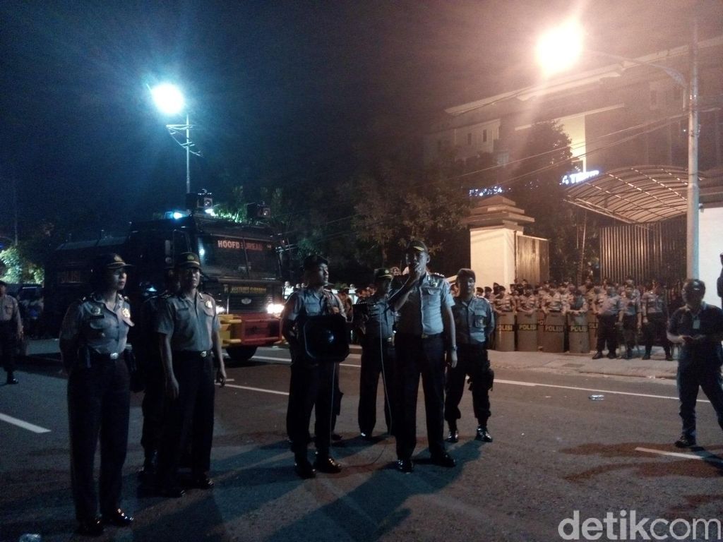 Tak lama kemudian, polisi memperingatkan massa. Dengan menggunakan pengeras suara, Kabag Ops Polrestabes Surabaya AKBP Radiant meminta massa membubarkan diri. Dia memberi waktu 5 menit.