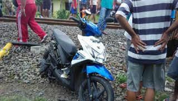 Korban yang tidak mendengar teriakan warga yang mengingatkan, tetap melaju melintasi rel hingga tertabrak kereta yang lewat. " Korban bersama motornya terpental ke selatan rel sekitar dua meter," kata Budi kepada wartawan di lokasi.