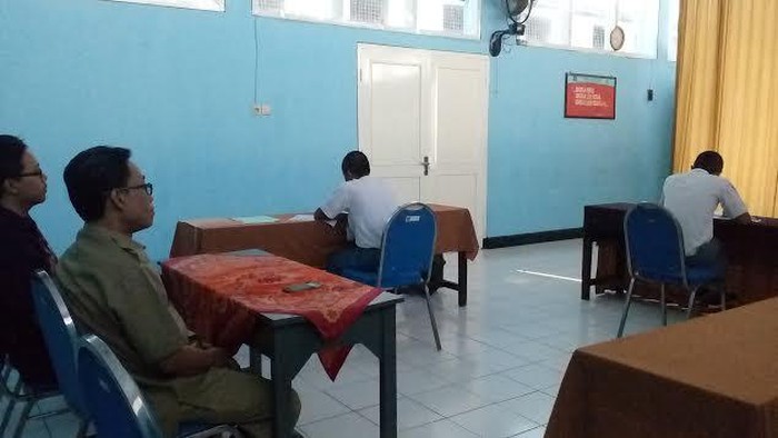 Kedua pelajar adalah MN asal SMK Nasional Mojosari dan AS asal SMK Brawijaya Kota Mojokerto. Dengan memakai seragam putih abu-abu, keduanya tampak serius mengerjakan soal UN mata pelajaran Bahas Indonesia di aula Lapas.