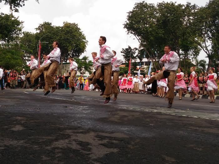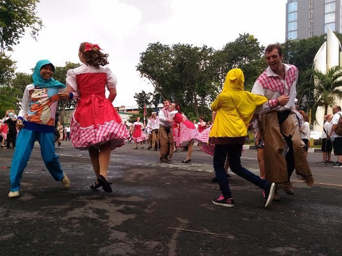 Performance diawali penampilan dari delegasi Amerika Serikat yang diwakili oleh negarabagianIdaho dengangrupAmericanFootwroksFolkDanceEnsemble. Penampilanatraktifpersonelnya mendapat sambutan meriah dariwargaSurabayayangmemenuhu jalan untuk menonton. Bule Amerika itujugaberinteraktif denganwargaSurabaya dengan mengajak menari bersama.