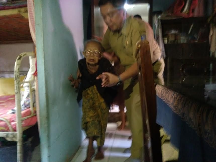 Cicik Ratna, anak dariSamijan menyambut baik kedatangan petugasDispendukcapil untuk melakukan perekaman e-KTP bagi warga yang tidak bisa bangun.