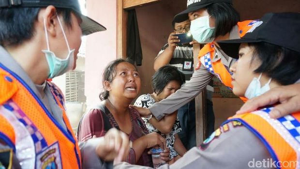 Tak hanya kaum pria, sejumlah ibu rumah tangga juga terlibat aksi saling dorong dengan petugas di lokasi tersebut. Mereka menangis histeris saat melihat suaminya ditangkap polisi. Polisi wanita (polwan) nampak menggiring ibu-ibu itu ke lokasi yang aman.