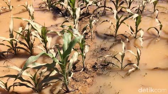 Menurut salah satu warga Desa Sumberagung Yogi Turnando, terendamnya puluhan hektar tanaman jagung dan buah naga itu lantaran Sungai Katak yang hulunya berada di kawasan Gunung Tumpang Pitu.