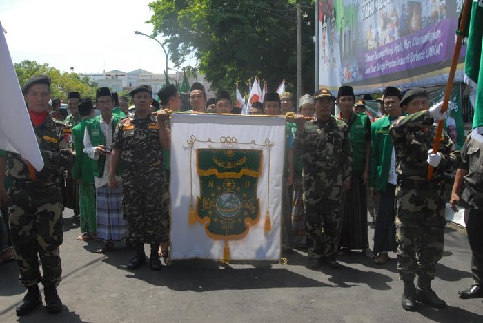 Wali Kota Pasuruan Setiyono menerima bendera Merah Putih, Sekretaris Daerah Kabupaten Pasuruan Agus Setiadji menerima bendera Nahdlatul Ulama, sedangkan perwakilan PWNU Jawa Timur Misbahul Munir, menerima pataka dari rombongan kirab.