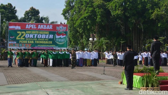 Peringatan Hari Santri yang ke-2 ini dipimpin langsung Bupati Trenggalek, Emil Elestianto Dardak, yang juga dihadiri oleh sejumlah pimpinan pondok pesantren dan lembaga pendidikan Islam.