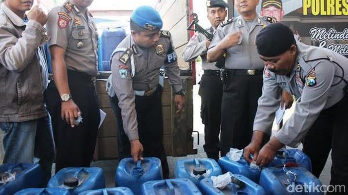 "Total ada 100 jerigen berisi 3.500 liter arak Bali. Penyelundupan terungkap setelah ada informasi dari warga terkait pengiriman arak Bali. Pengiriman lewat Pelabuhan Ketapang," kata Kapolres Banyuwangi, AKBP Budi Mulyanto kepada detikcom, Jumat (4/11/2016).