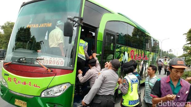 "Kegiatan ini untuk mengantisipasi kaitannya aksi damai di Jakarta. Kami razia bus antar provinsi, kendaraan boks, dan station yang dicurigai. Sasaran kami yang utama adalah senjata tajam, bahan peledak, dan narkoba yang mungkin dibawa penumpang," kata Kapolsek Trowulan, Kompol M Sulkan kepada detikcom di lokasi.