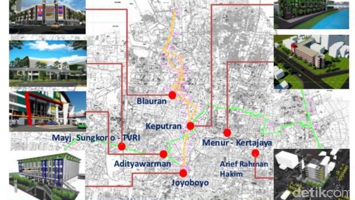 Ke 5 park and ride yang akan dibangun di kawasan Blauran, Adityawarman (eks gedung Disbudpar), Arief Rahman Hakim (eks gedung Disperidag), Menur dan Keputran.