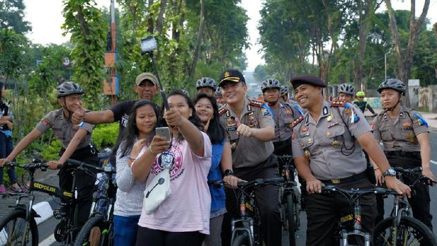 Tak sedikit, yang meminta swafoto bersama perwira yang murah senyum itu. Permintaan warga itu dilayani satu persatu. Selama patroli bersepeda, dia juga kerap menyapa warga yang lanjut usia maupun anak-anak.