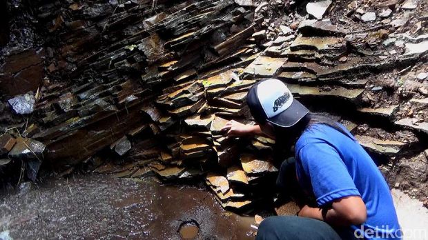 Pada sisi utara sungai ini, terdapat lempengan batu besar masing-masing sepanjang 30 meter dengan ketinggian sekitar 4 meter. Lempengan batu ini membentang sepanjang sekitar 100 meter. Sementara pada ujung timurnya, terdapat tumpukan lempengan batu yang tersusun rapi menyerupai candi. Ketebalan batu penyusunnya 2-5 cm.