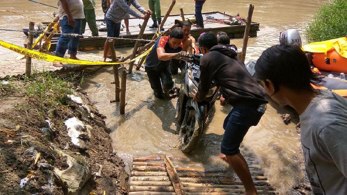 Sama seperti kemarin, setiap motor yang terdeteksi oleh penyelam kemudian diberi tanda menggunakan pelampung. Untuk selanjutnya tali tambang diikatkan ke motor dan ditarik oleh warga ke daratan.