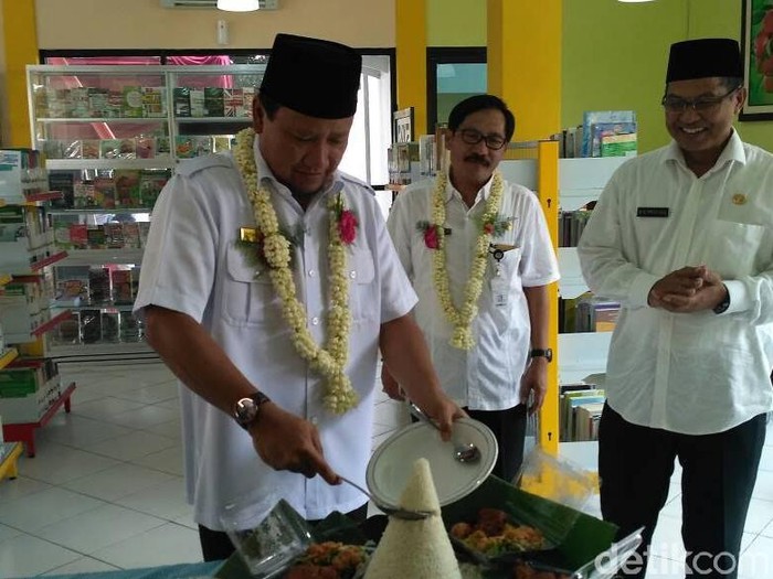 Peresmian Perpustakaan Pandaan dilakukan sederhana ditandai pemotongan tumpeng. Peresmian dihadiri juga oleh Wakil Bupati Riang Kulup Prayudha, Kepala Dinas Perpustakaan dan Arsip, pejabat terkait dan Muspika Pandaan. (fat/fat)