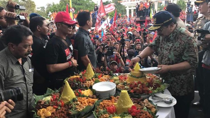 May Day di Surabaya ditutup dengan tumpengan dan lagu Happy Birthday. Gubernur Soekarwo menyerahkan potongan tumpeng kepada perwakilan buruh, Jazuli. Soekarwo sendiri menampung sejumah aspirasi buruh, yakni: