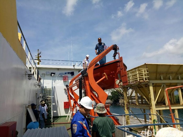 Petugas KSOP Tanjung Wangi memeriksa kapal secara detail. Mulai alat keselamatan hingga navigasi kapal. Bahkan, dalam kesempatan tersebut petugas KSOP meminta awak kapal mencoba perahu darurat di kapal tersebut.
