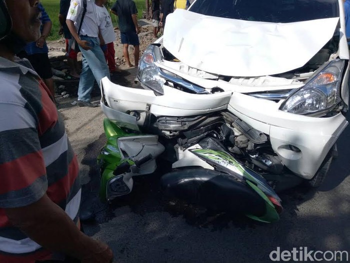 "Sepeda motor sempat terseret 20 meter. Mobil melaju kencang. Saat pas pertigaan GOR itu sepeda motor muncul. Langsung kena tabrak," ujar Toni, salah satu saksi mata.