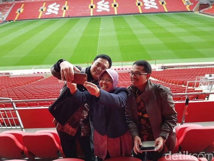 Salah satu wefie ketiganya saat berkunjung ke stadion dan sekolah sepak bola Transmere Rover Football Club Mark Pallios di Stadion Anfield Liverpool.
