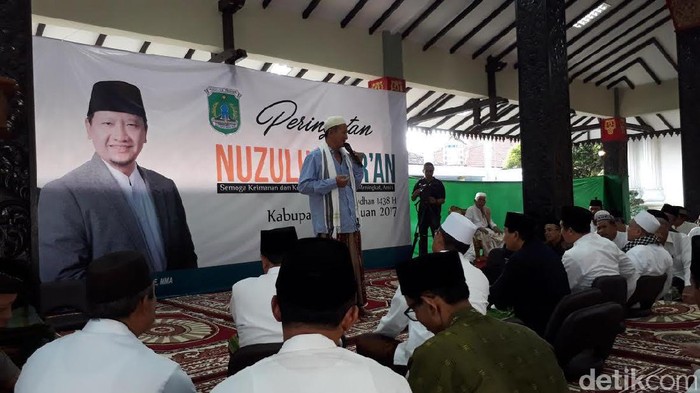 "Bersamaan dengan peringatan malam Nuzulul Qur'an ini, pemkab sengaja mengundang para anak yatim untuk berbagi kebahagiaan. Ini merupakan wujud upaya memuliakan anak yatim. Memperhatikan anak yatim merupakan kewajiban kita bersama," kata Bupati Irsyad dalam sambutannya, Jumat (9/6/2017).