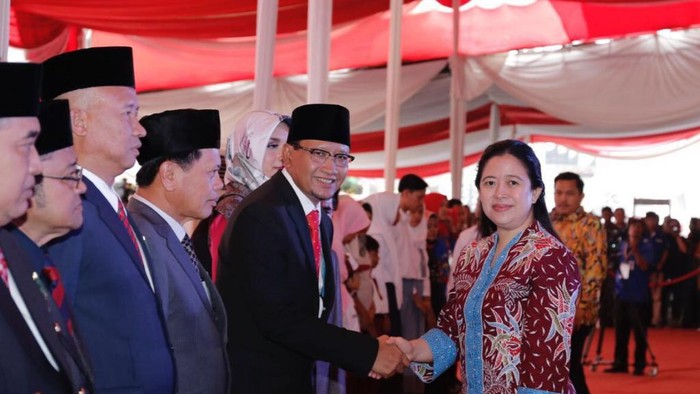 Satyalancana disematkan oleh Menteri Koordinator Pembangunan Manusia dan Kebudayaan Puan Maharani mewakili presiden pada peringatan Hari Keluarga Nasional (Harganas) ke-XXIV di Pusat Kegiatan Olahraga (PKOR) Way Halim, Kota Bandar Lampung, Provinsi Lampung, Sabtu (15/7/2017).